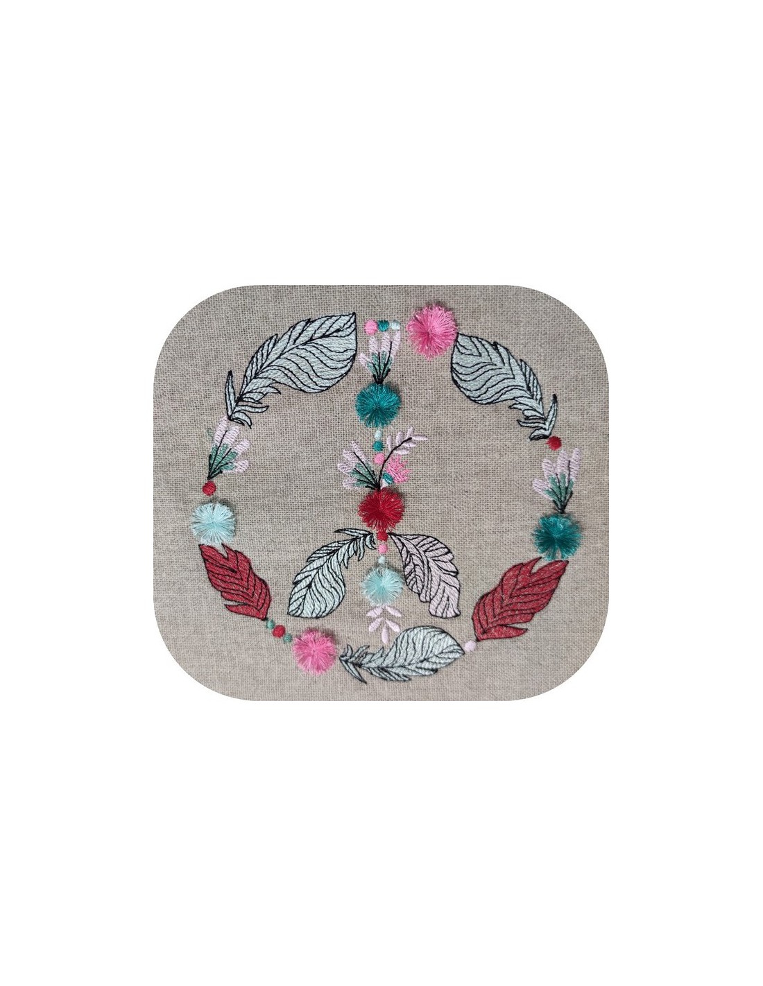 Instant download machine embroidery design boho peace and love with plums and fringes tassels