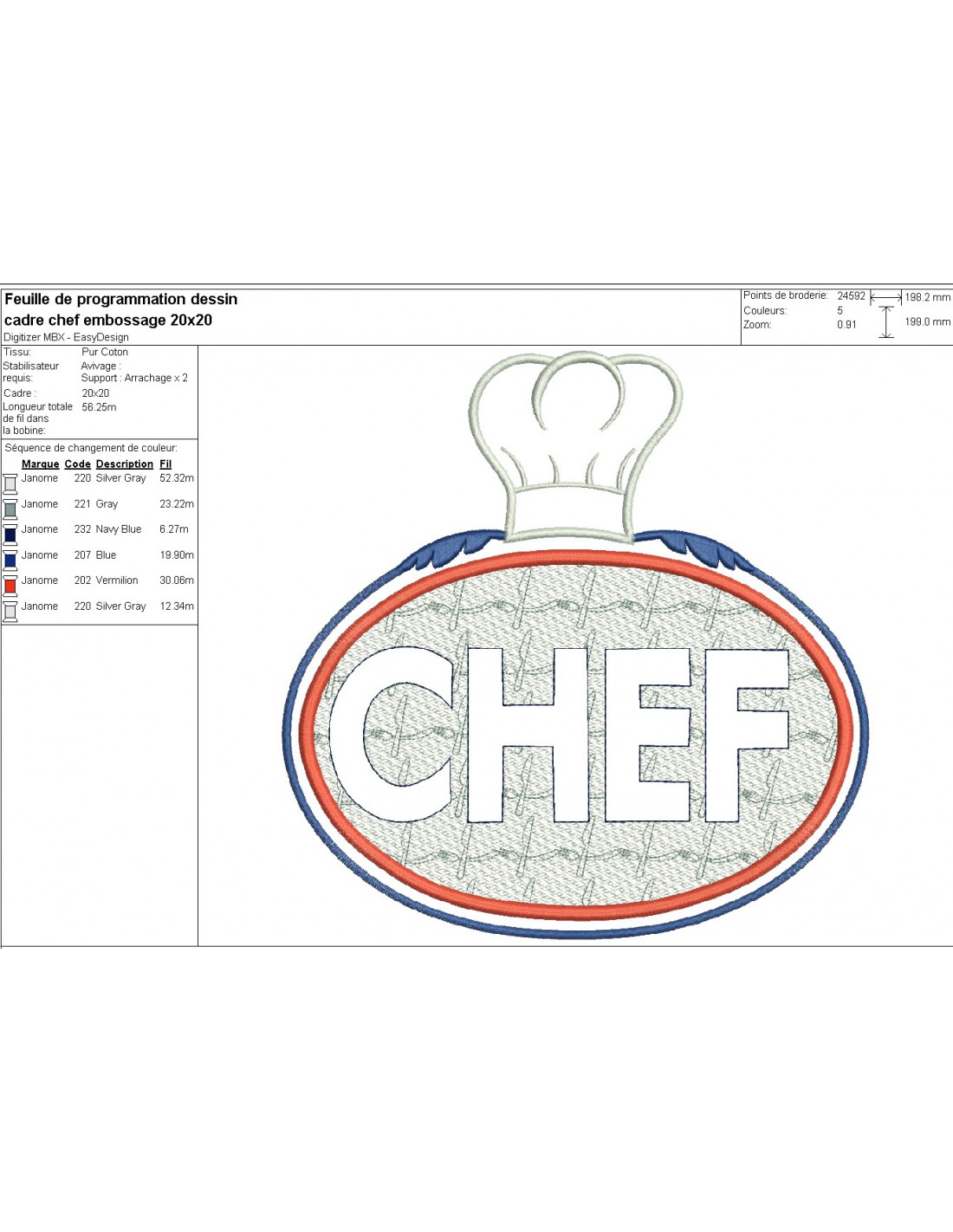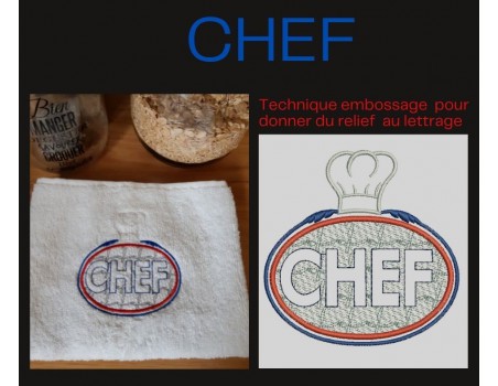 Instant download machine embroidery design chef text embossed