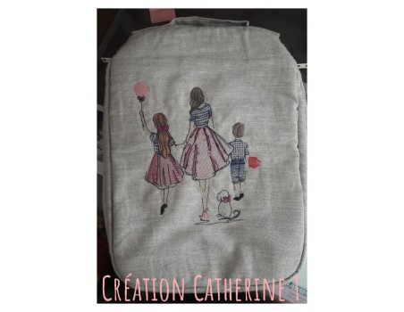 Instant download machine embroidery design rippled mother with her daughter and her son