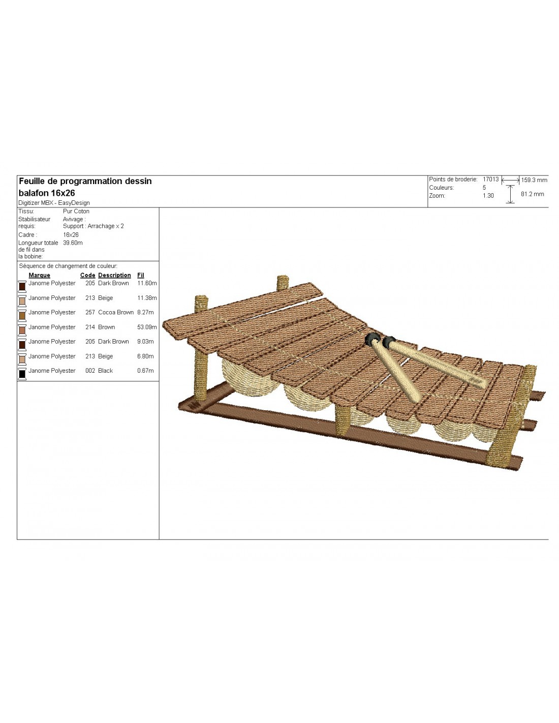 embroidery design music balafon