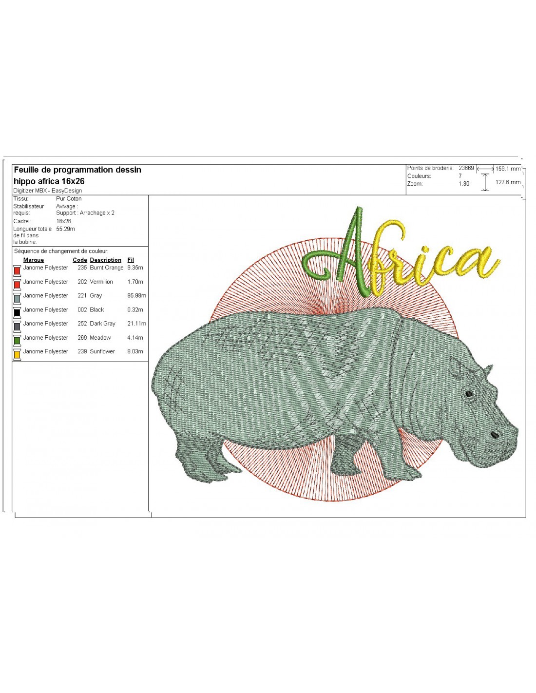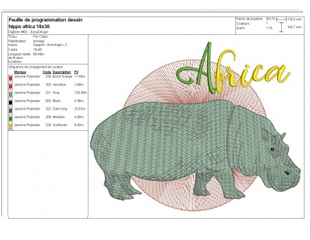 Instant download machine embroidery design hippopotamus africa