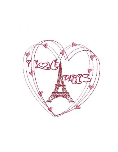 Instant download machine embroidery Paris with heart Eiffel Tower