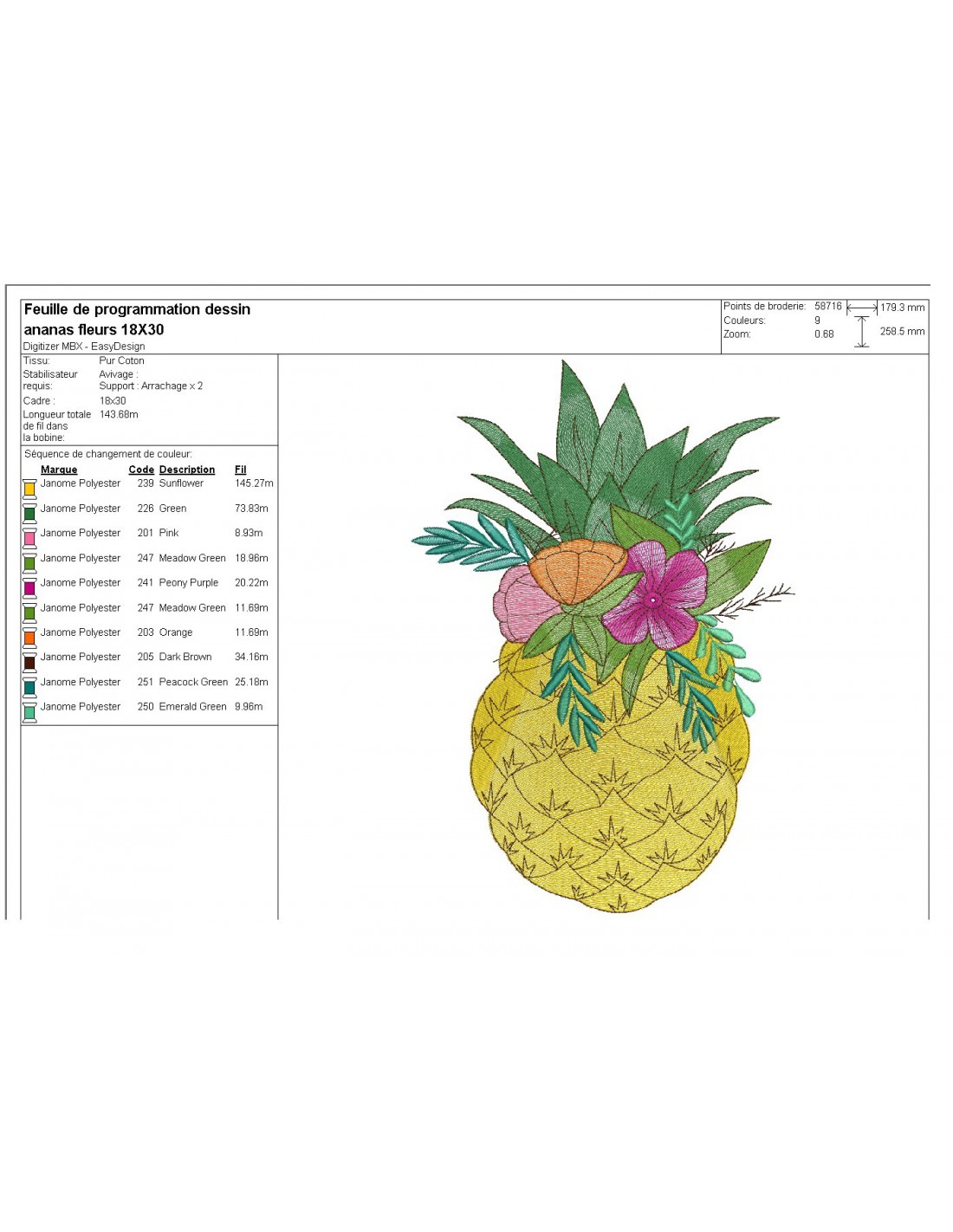 Instant download machine embroidery design pineapple flowers