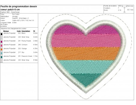 Instant download machine embroidery design patch multicolor heart