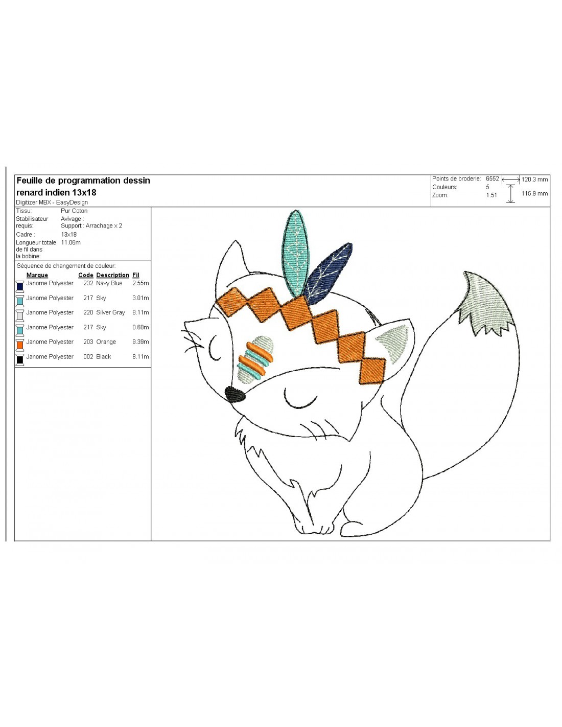 Instant download machine embroidery Indian fox