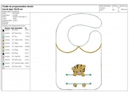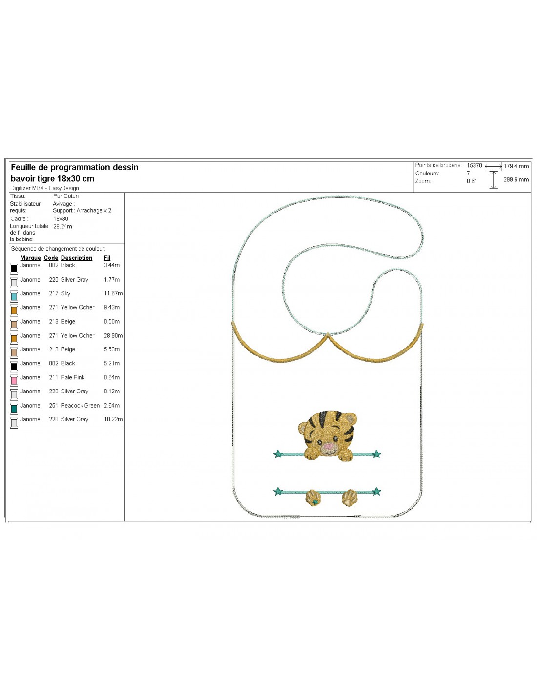 Instant downloads machine embroidery design machine ITH bib customizable tiger for child
