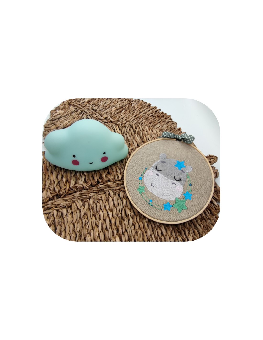 Instant download machine embroidery design sleeping hippopotamus with stars