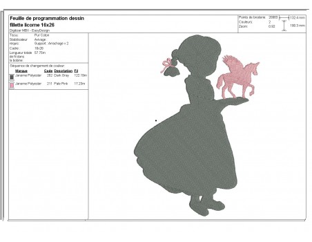 Instant download machine embroidery silhouette little girl with a unicorn