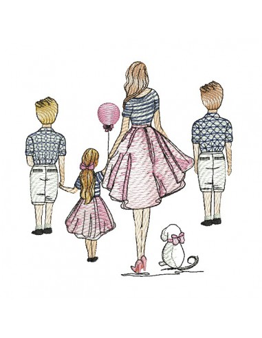 Instant download machine embroidery design rippled mother with her 2 boys and her daughter