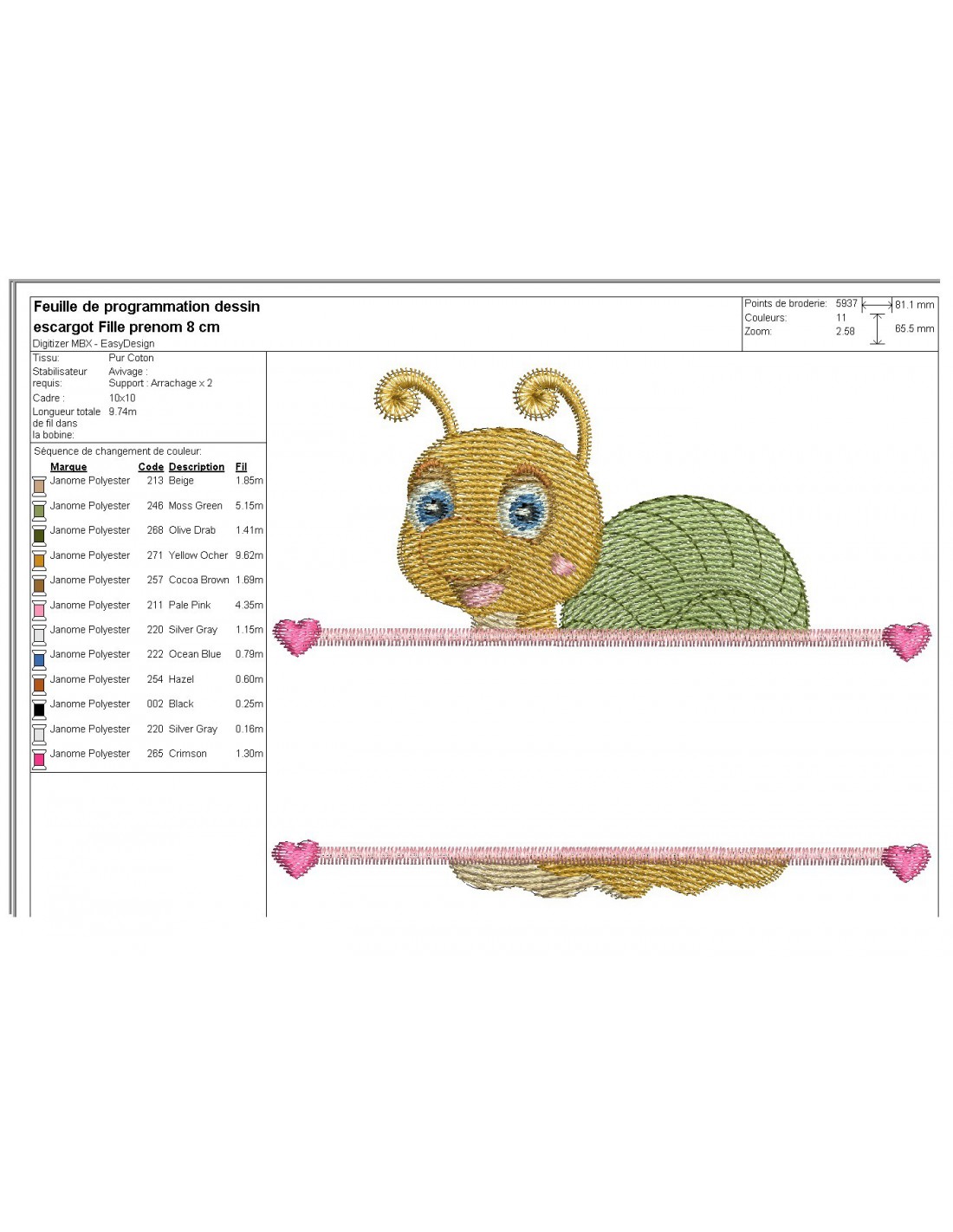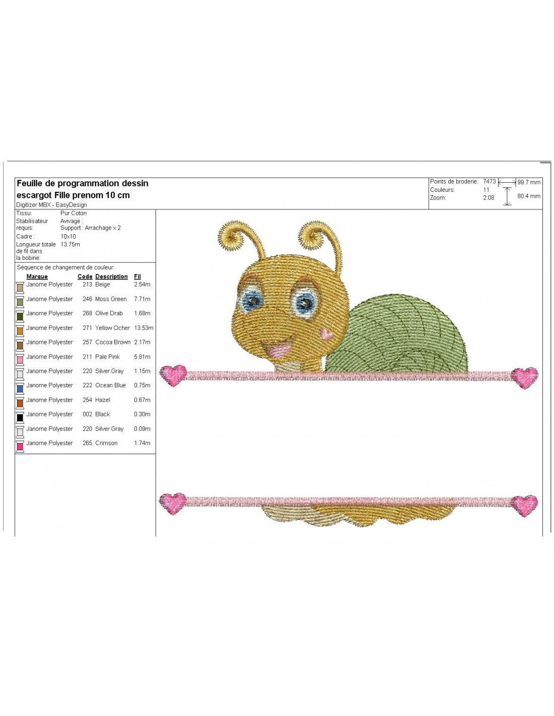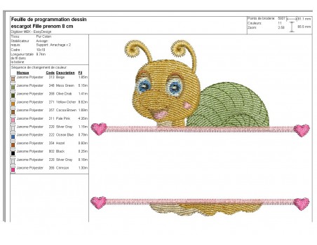 instant download machine embroidery design customizable snail girl