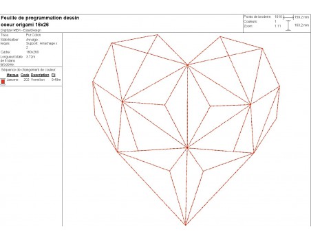 Instant download machine embroidery design origami heart