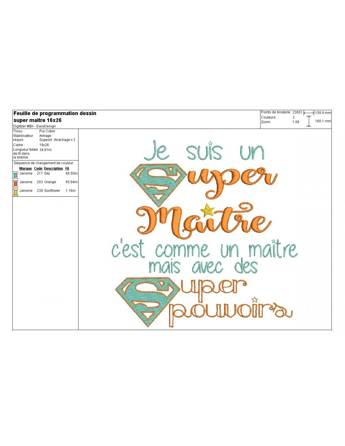 Scolaire Embroidery design teacher 2527 €3.00 Embroidery design Teacher For 4x4, 5x7, 6x8, 6x10 and 6x15 hoop Add to cart