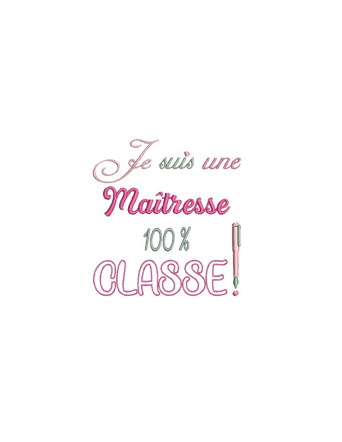 Scolaire Embroidery design super teacher 2534 €3.00 Embroidery design Super teacher For 4x4, 5x7, 6x8, 6x10 and 6x15 hoop Add to cart