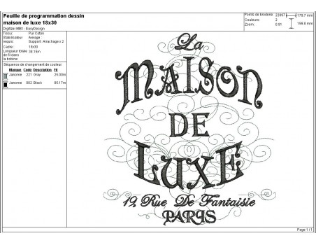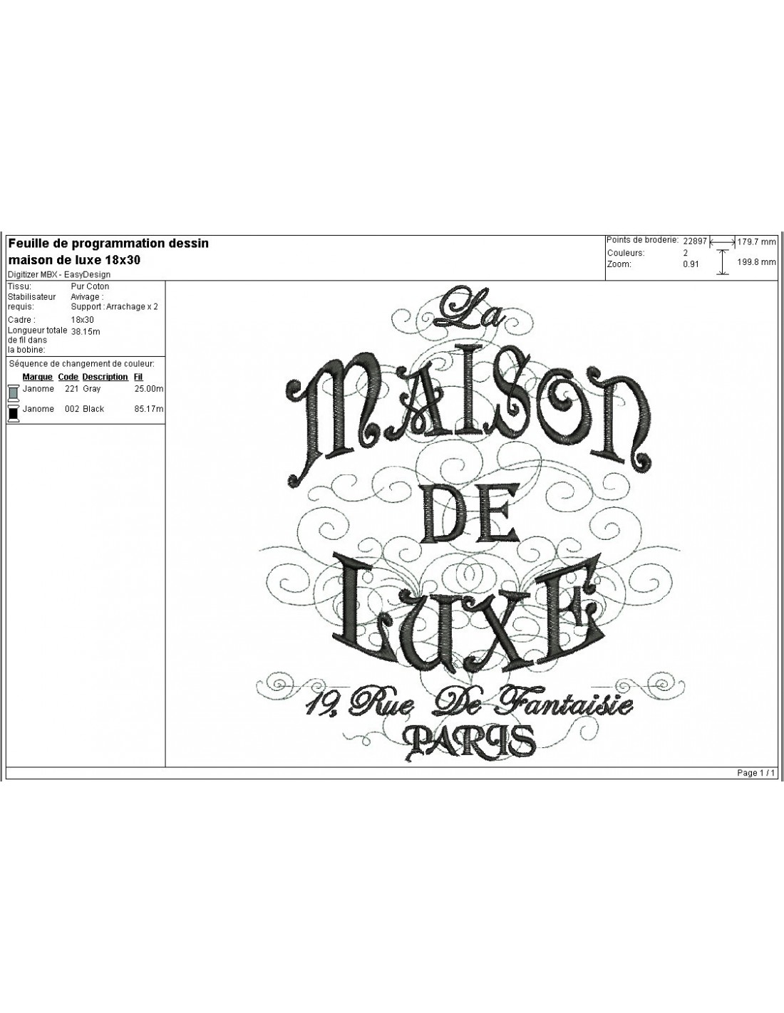 Instant download machine embroidery French Inspired Maison De Luxe Paris