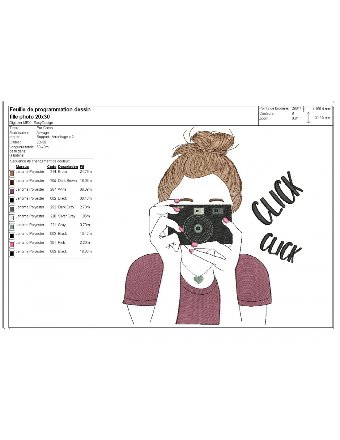 Instant download machine embroidery design girl taking a photo