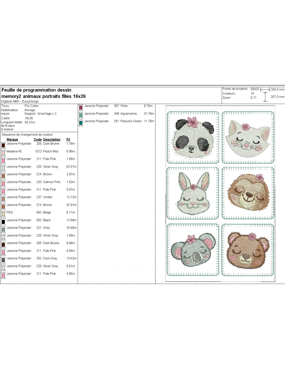 Motif de broderie machine ITH memory 2 animaux portraits filles
