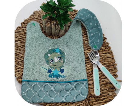 Voici un petit dinosaure tricératops à broder sur différentes créations avec ses étoiles