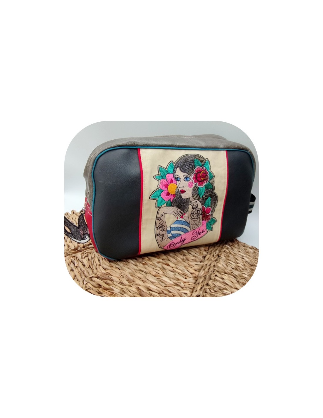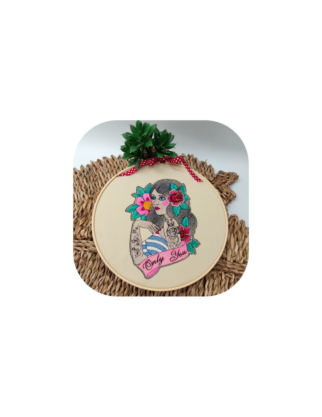 Voici une pin up tatouée style Rockabilly à broder en broderie façon rippled ombré pour donner du mouvement et un style plus léger à vos créations