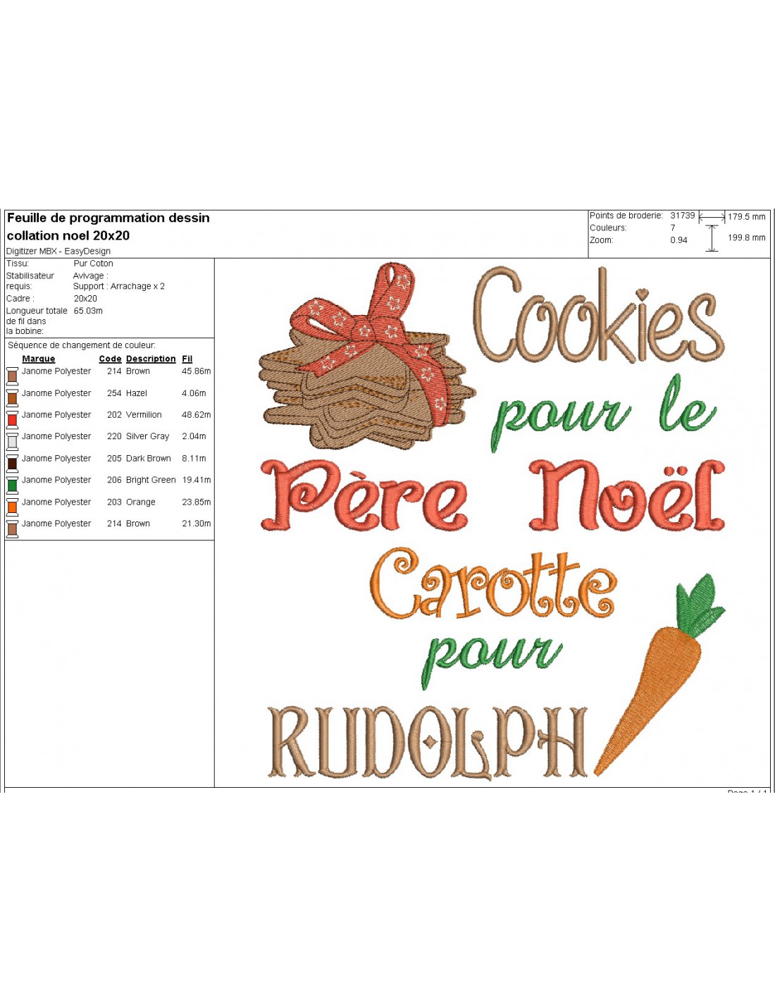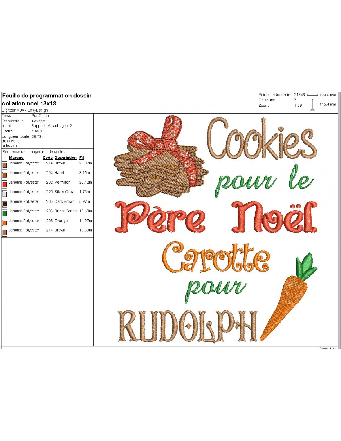 Voici le goûter du père Noël et de son renne à broder sur diverses créations pour votre décoration de Noël