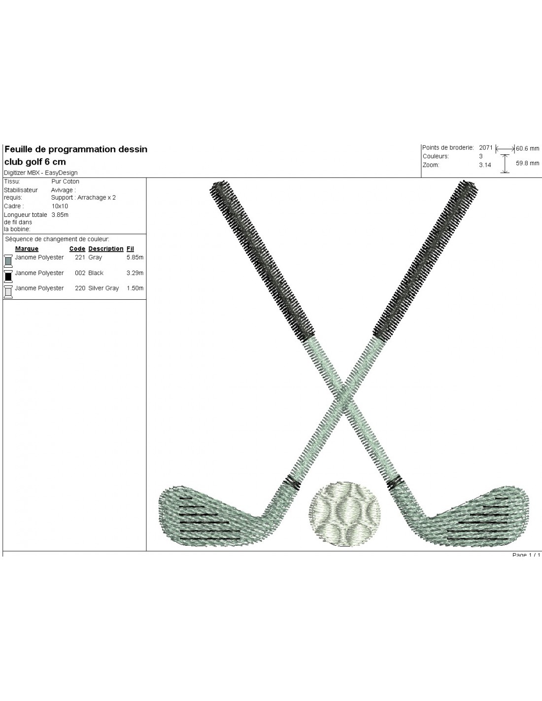 voici des clubs de golf à broder sur vos diverses créations pour les adeptes du golf