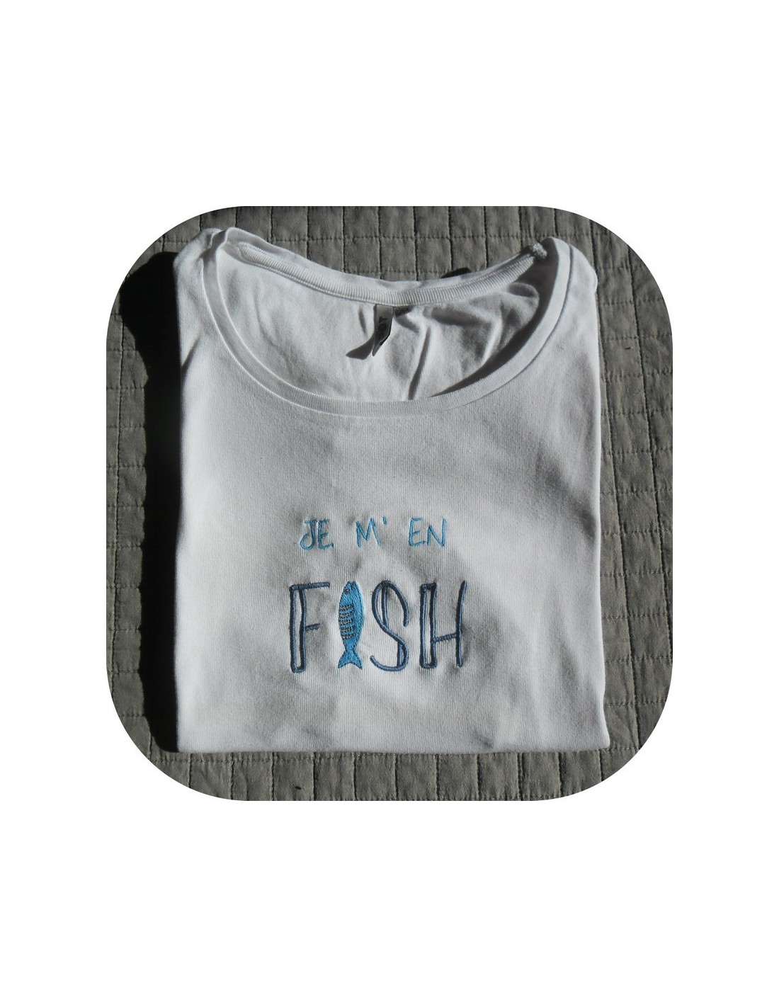 Voici un texte humour Je m'en fish à broder sur diverses créations comme un tee shirt par exemple