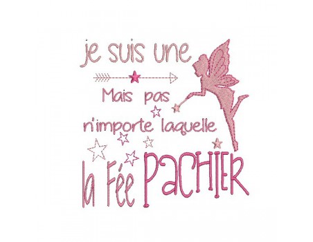 Motif de broderie machine texte humour fée
