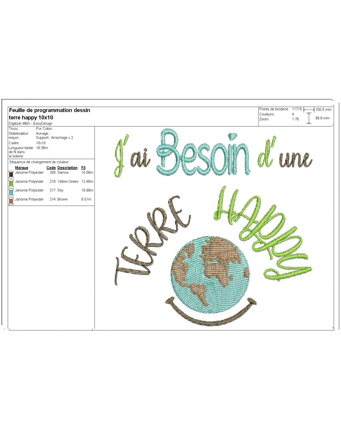 Voici un jeu de mots terre happy à broder sur un tote bag pour les courses par exemple