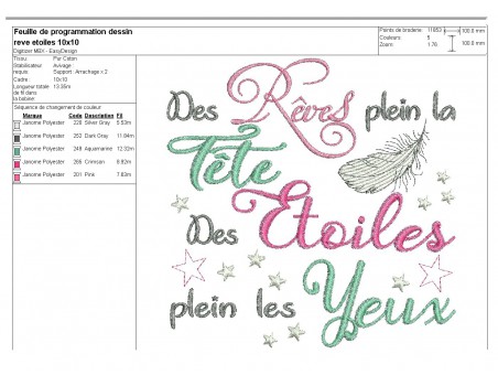 Voici un texte des rêves et des étoiles à broder sur diverses créations