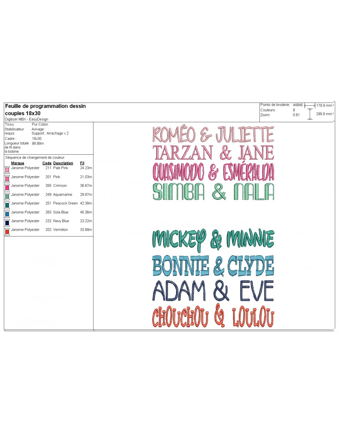 Les couples célèbres à personnaliser avec vos prénoms dans l'espace prévu à cet effet