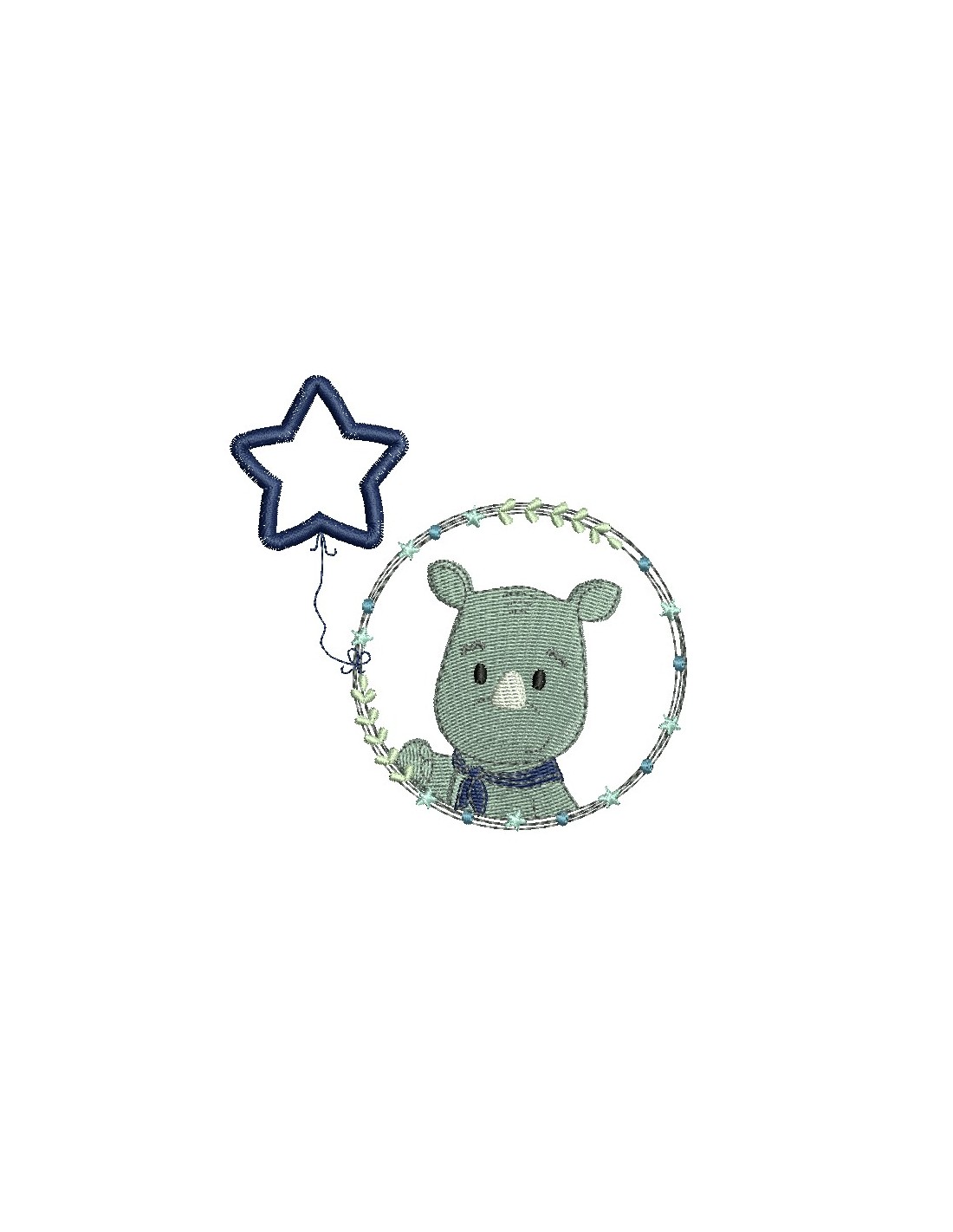 Motif de broderie machine rhinocéros garçon avec son ballon étoile en appliqué