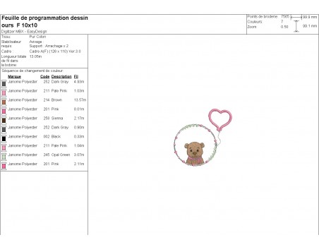Motif de broderie machine ours fille avec son ballon coeur en appliqué