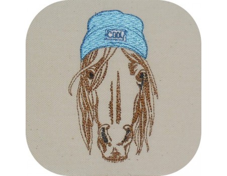 Voici un cheval à broder avec son bonnet sur vos créations