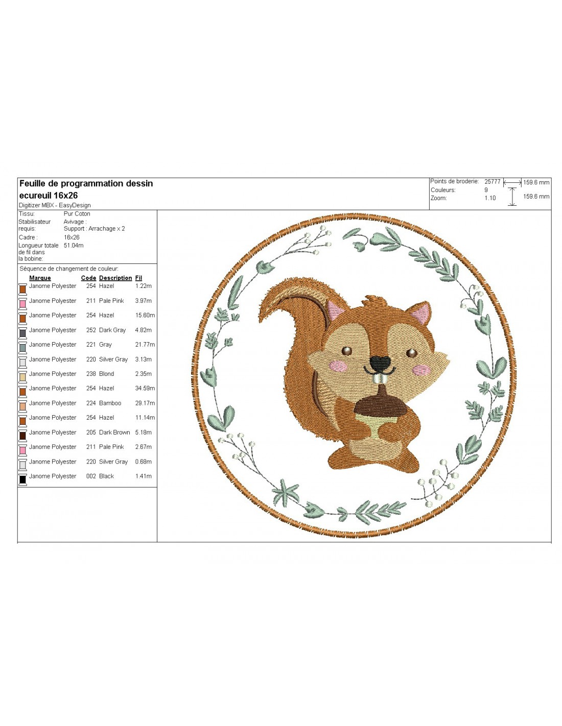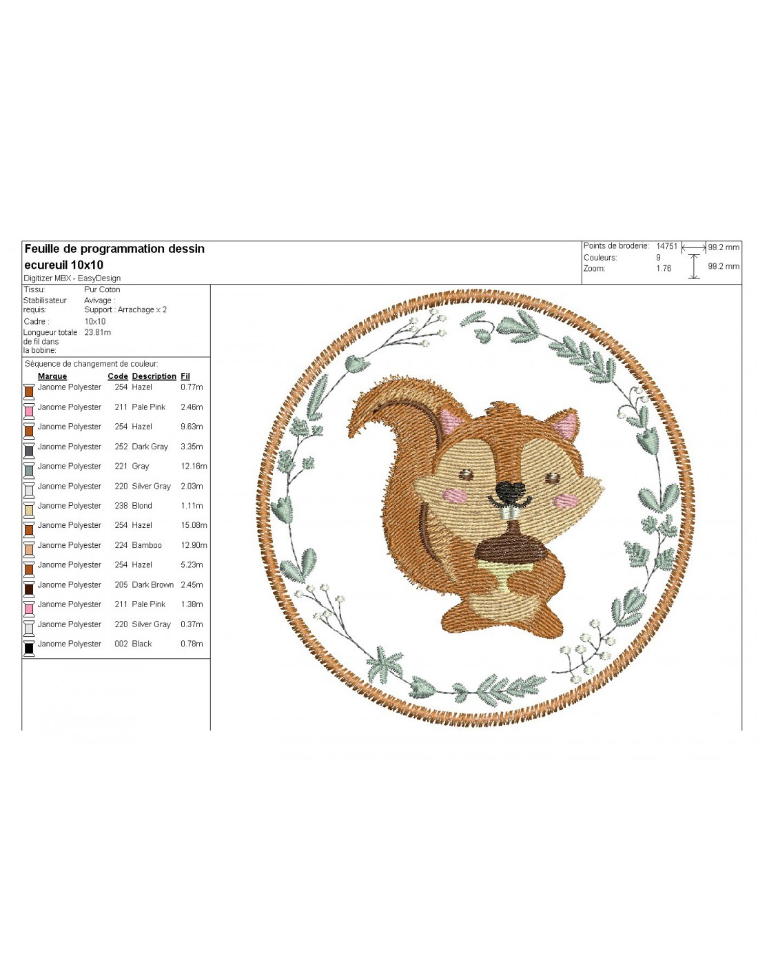 Motif de broderie machine écureuil