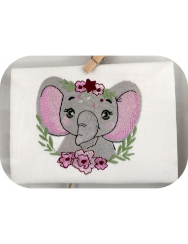 Voici une petite éléphante avec son serre tête étoile à broder sur différentes créations avec ses fleurs