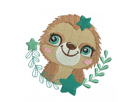Voici un petit paresseux à broder sur différentes créations avec sa couronne d'étoiles
