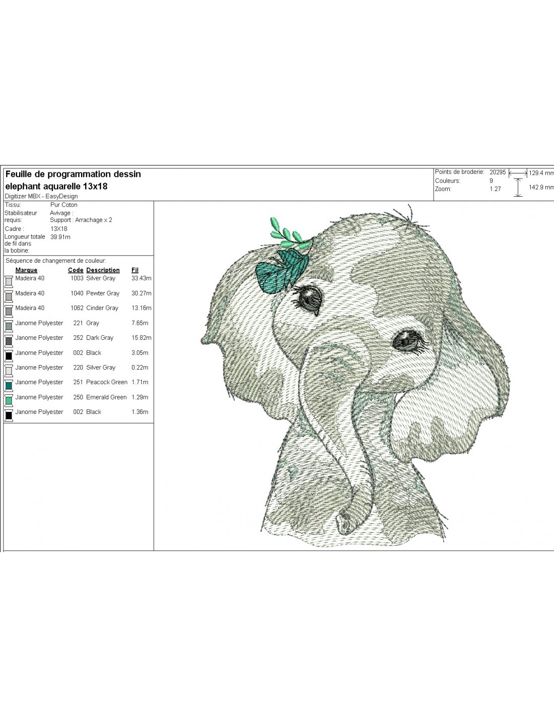 Voici un petit éléphant à broder esprit aquarelle pour être dans la tendance sur différentes créations