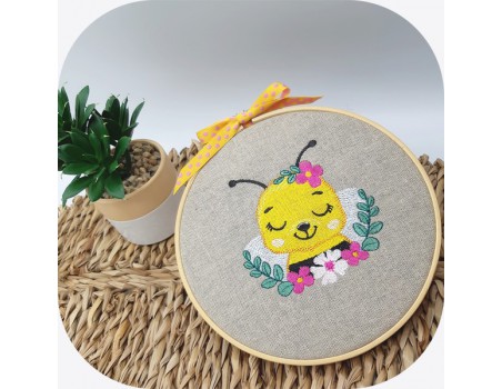 Motif de broderie machine l'abeille endormie avec ses fleurs