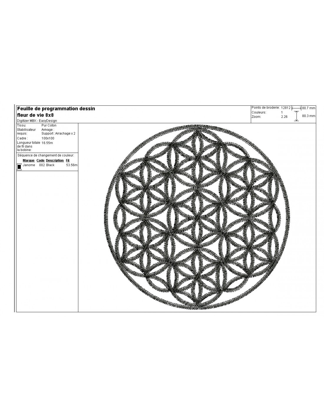 Motif de broderie machine fleur de vie