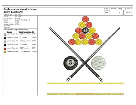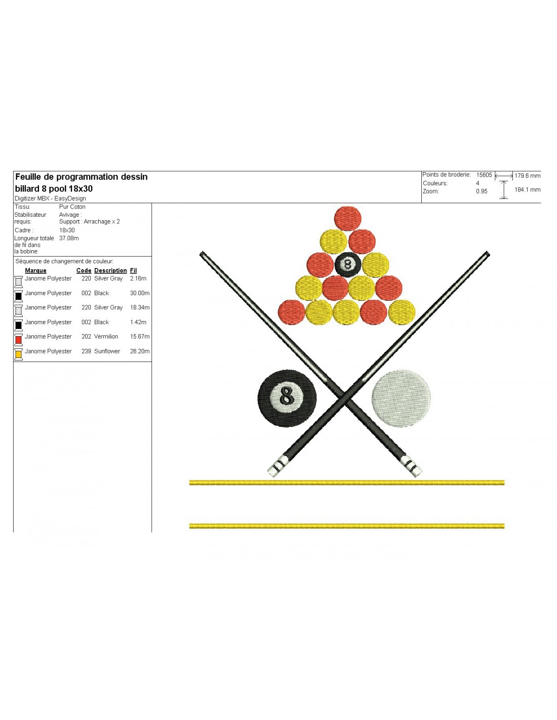 Voici un motif de broderie billard 8 pool à broder sur diverses créations