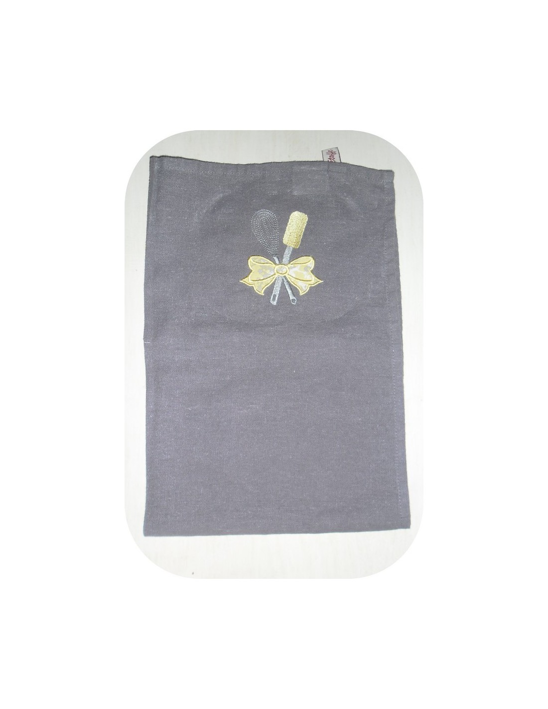 Voici un motif un fouet et une spatule en silicone à broder avec un joli noeud en appliqué sur diverses créations comme sur un tablier , un torchon