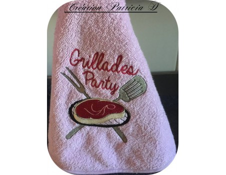 Voici un motif de grillade pièce de boeuf à broder en 4 tailles selon vos projets, sur vos diverses créations cuisine comme sur un torchon, un tablier, idéal pour vos grillades d'été