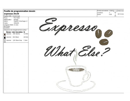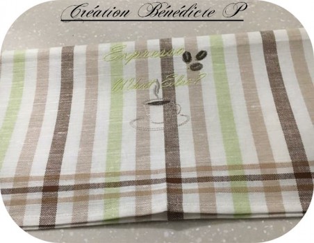 Voici une tasse expresso à broder sur diverses créations pour les amateurs de café, à broder dans un cadre pour décorer la cuisine, sur une serviette, un torchon What else?