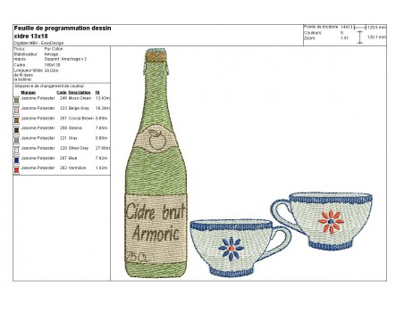 Voici une bouteille de cidre et des bolées bretonnes à broder sur diverses créations , sur un tablier , un pochon, un torchon