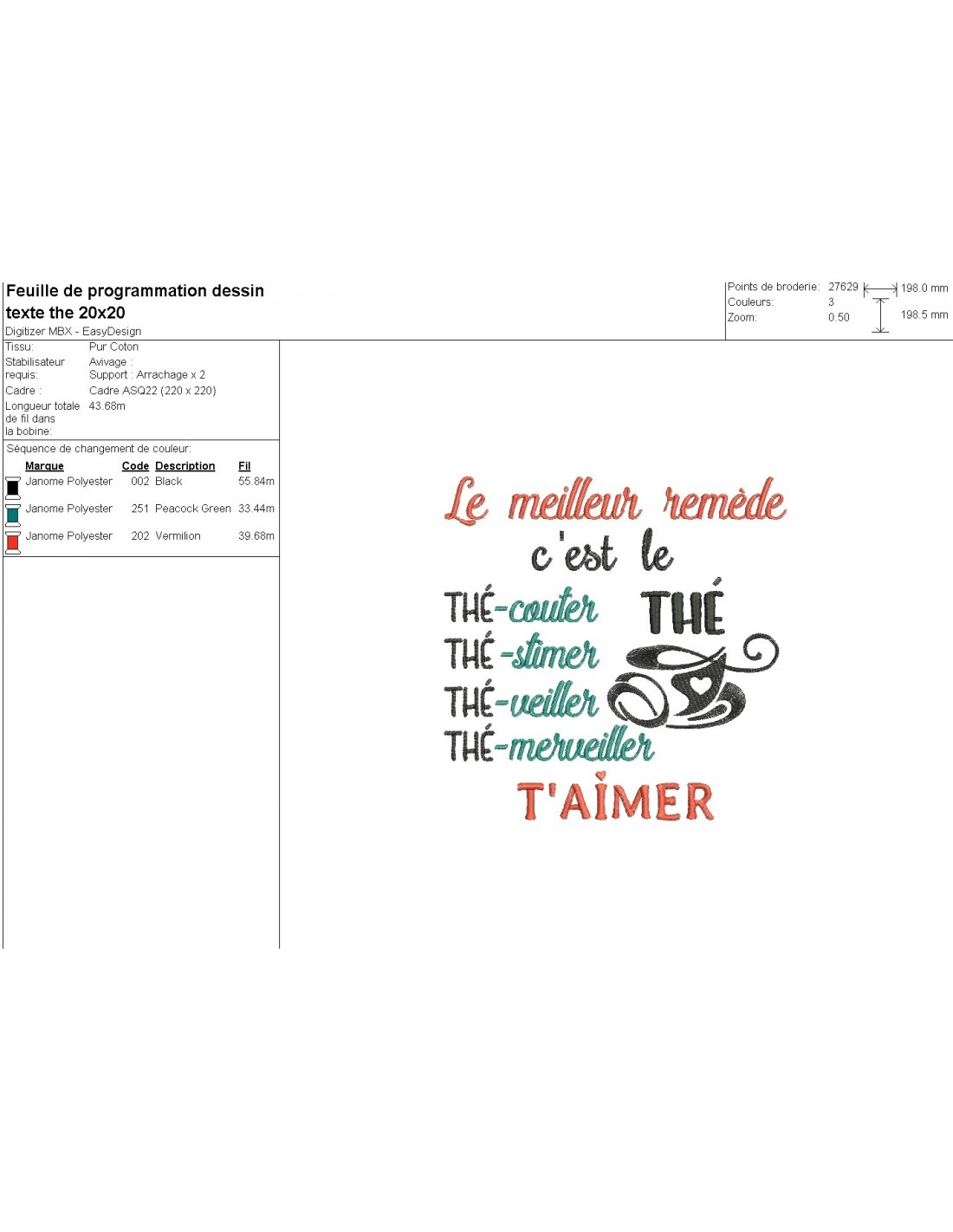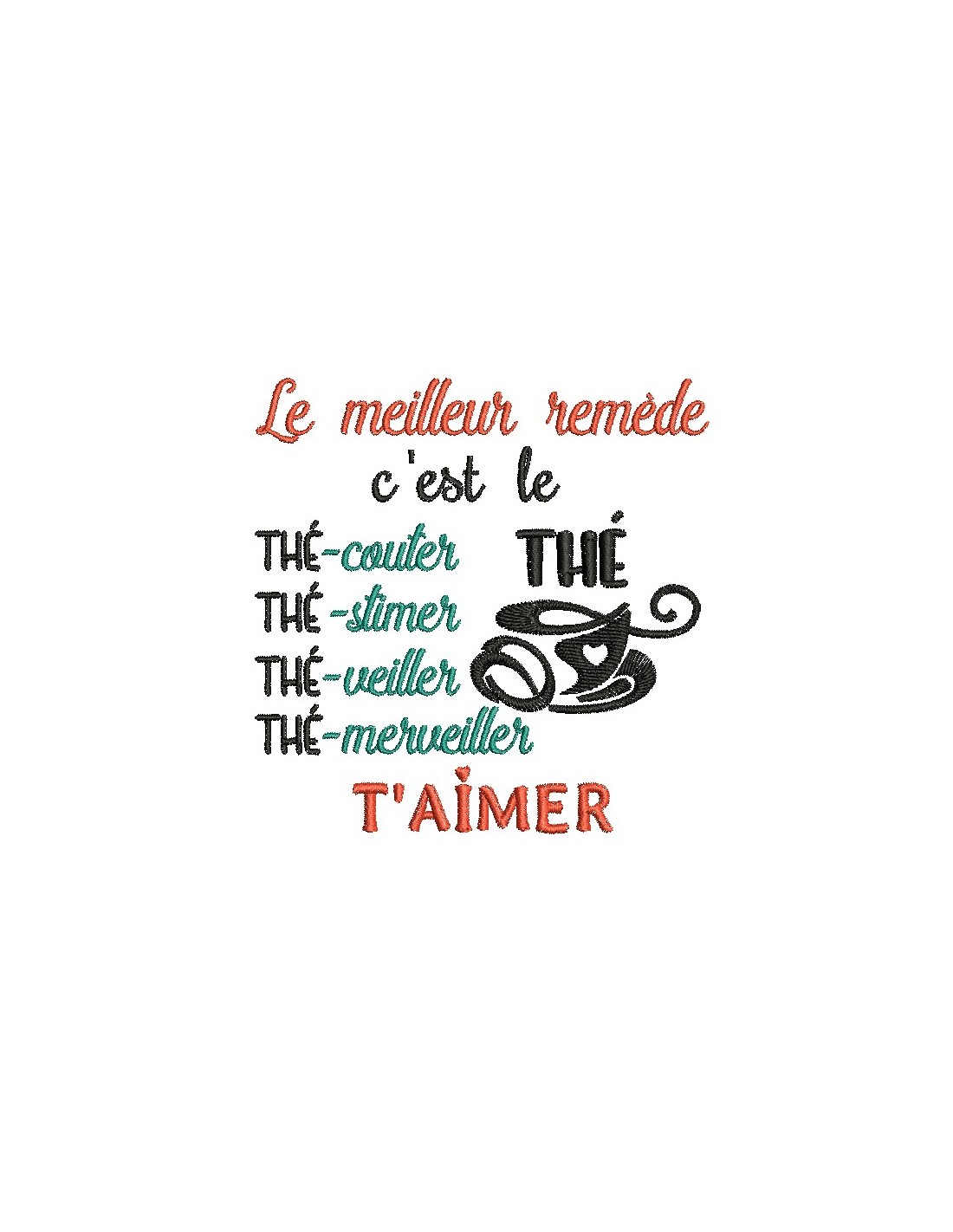 Voici un jeu de mot autour du thé à broder sur vos différentes créations