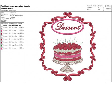 Voici un dessert aux cerises à broder dans son cadre sur vos diverses créations gourmandes