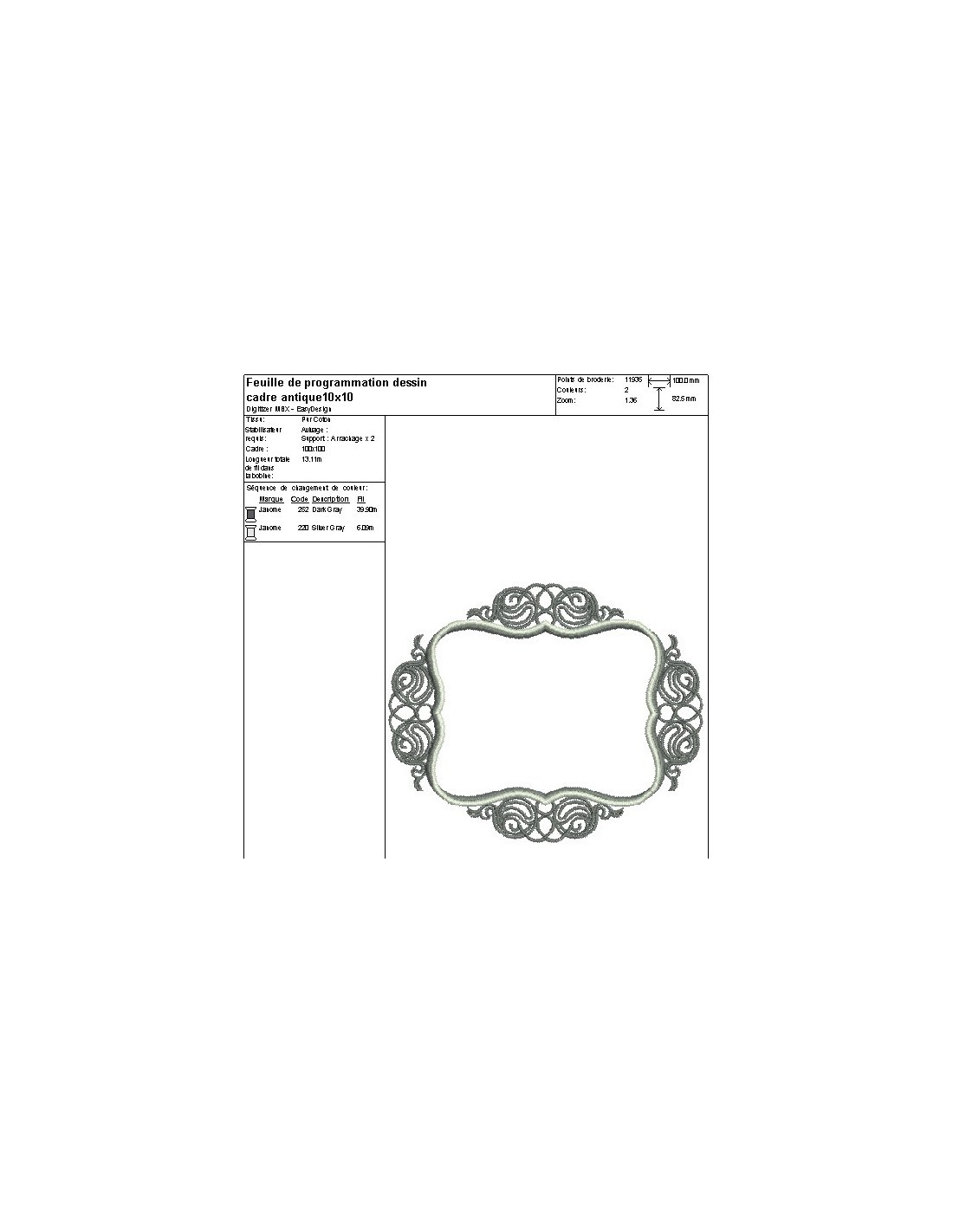 Motif de broderie machine cadre antique