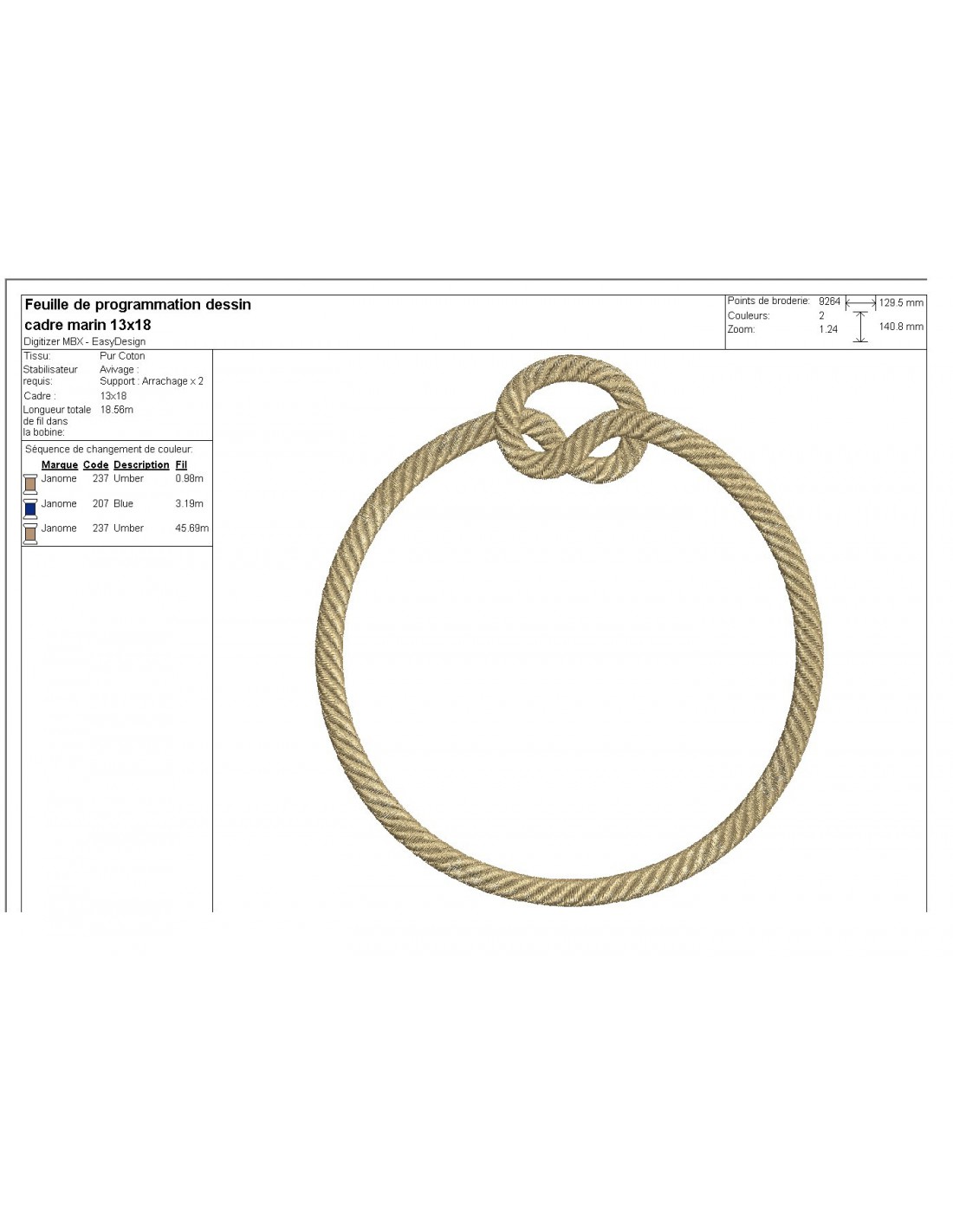 Motif de broderie machine cadre marin