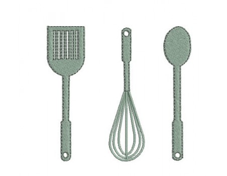 Voici un set d'ustensiles de cuisine à broder sur vos diverses créations pour agrémenter la décoration de votre cuisine