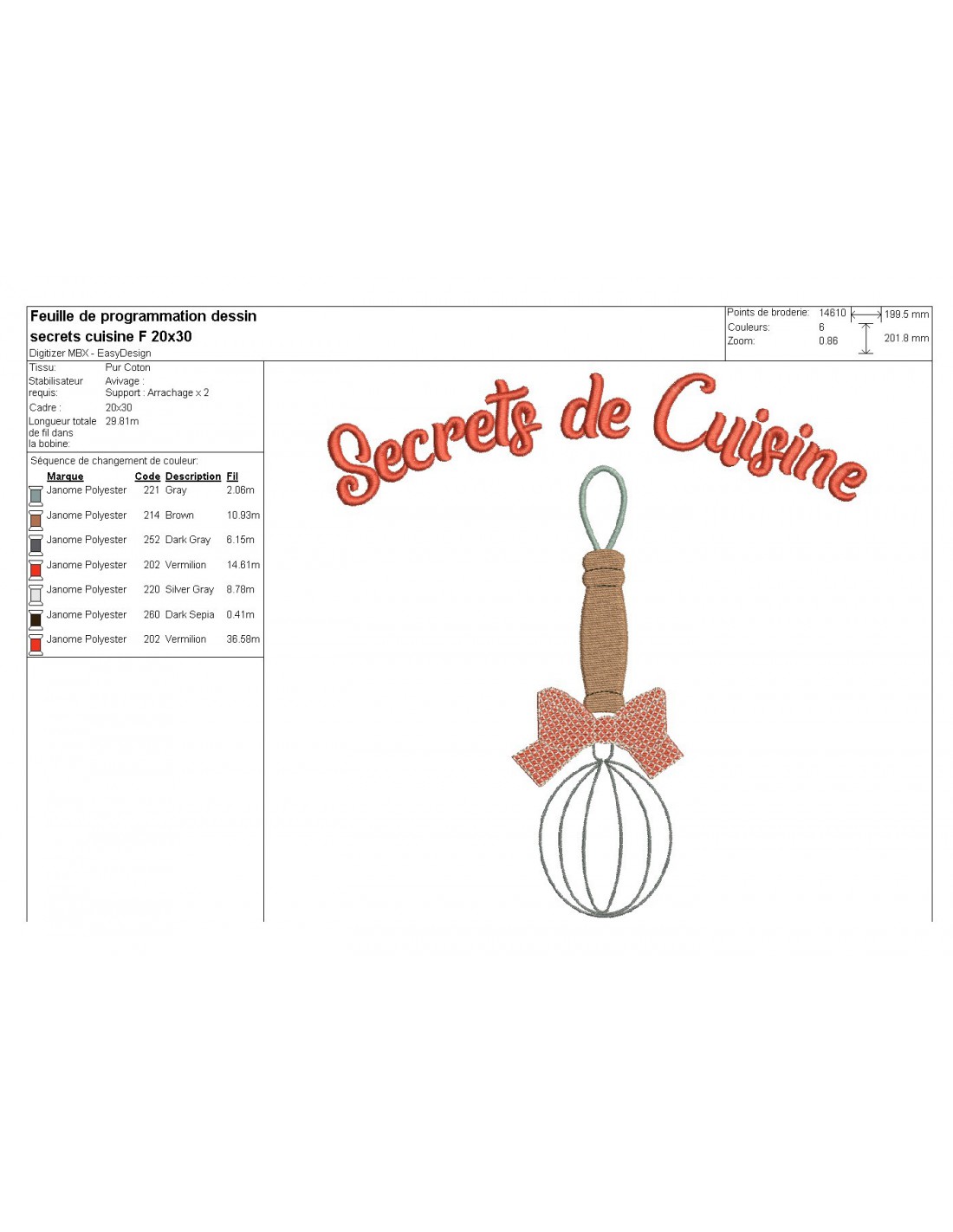 Voici dans la collection secrets de cuisine le fouet à broder sur différentes créations