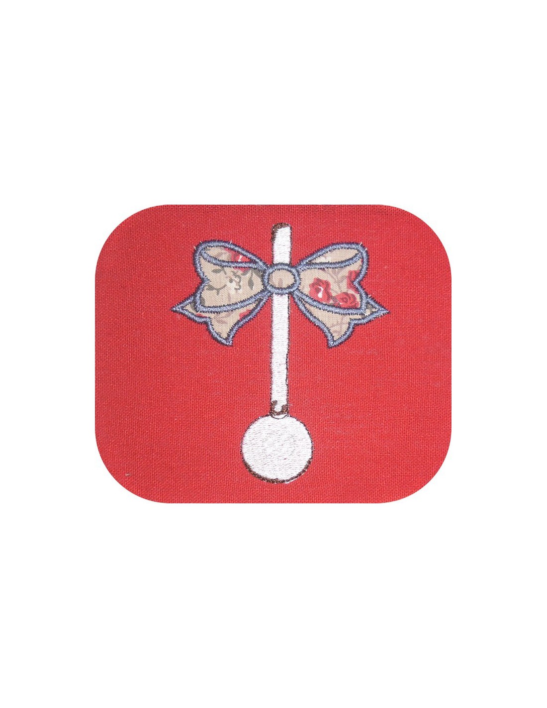 Motif de broderie machine louche emaillée avec un noeud en appliqué